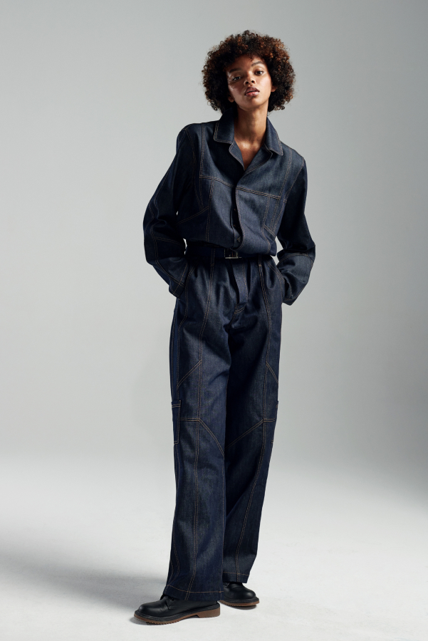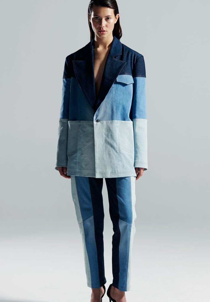 En Israël, la marque Hannah (lauréate OpenMyMed Prize 2017), fondée par Nir Goeta et Rotem Mitz-Goeta cultive un aspect résolument mode du vêtement indigo : le total look. À partir des années 1980, le jean ne se porte plus seulement en pantalon mais s’affiche sur l’ensemble de la parure via les célèbres vestes Levi’s et Lee Cooper. Depuis, les marques de mode à proposer des silhouettes entièrement en jean sont nombreuses. Hannah, dont les membres fondateurs sont passés par la Maison Margiela, développe ainsi une esthétique workwear autour du denim. Par des coupes à la fois légères et minimales, les gammes « essential » et « double denim » revisitent le power dressing, renouant avec la première fonction mythologique de ce vêtement pas comme les autres : la vie active.