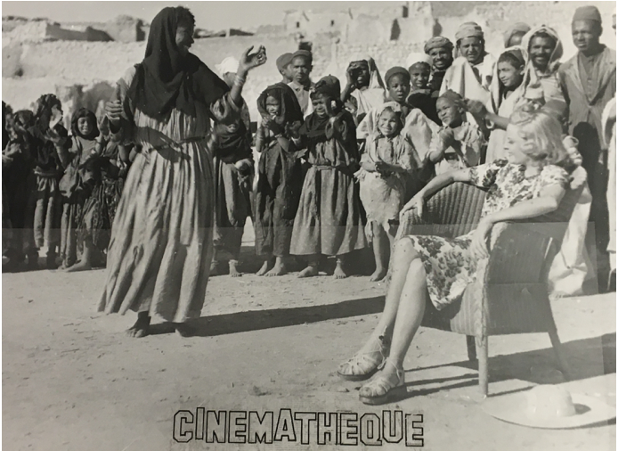 L’Appel du Bled, l’exemple le plus récent dans mon travail, est le film que j’ai choisi ici. Assez peu connu, difficile d’accès – seule une version en plusieurs bobines, abimées, semble exister, conservé au Patrimoine du CNC, Bois d’Arcy – il m’intéresse par sa représentation monocorde. Sorti en 1942, il s’agit d’un film aux accents pétinistes et colonialistes, dont le sous-titre évocateur était Femmes de Bonne Volonté, illustrant le rôle idéal d’une femme dans la colonie nord-africaine. Il raconte l’histoire de Germaine Moreil, qui suit son époux colon dans “le bled” – le Sud algérien — au damn de ses parents (“c’est pas un mariage, c’est un rapt”). L’histoire encense cette femme “de bonne volonté”, épouse avant tout, qui souhaite par exemple mettre fin à son voyage de noce dans le Maghreb, plaisir futile, pour vivre avec son mari colon, sur leur plantation :