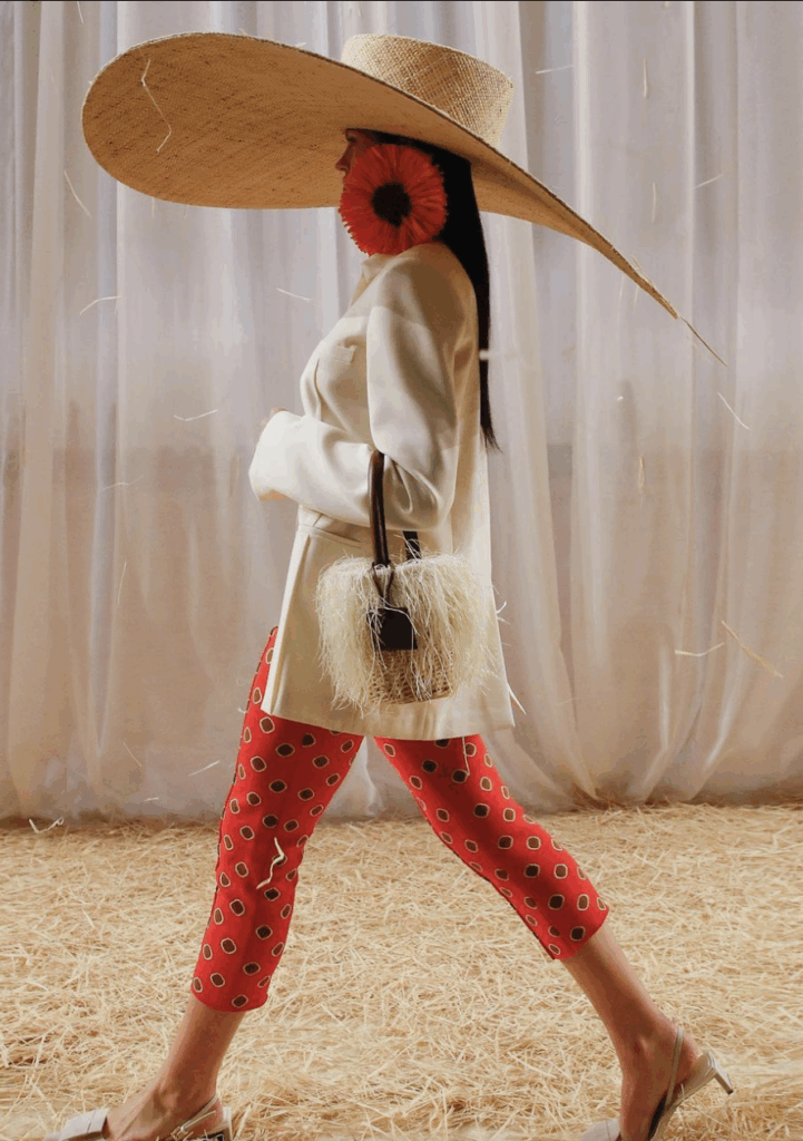 Le 12 décembre dernier, le créateur originaire du Sud de la France Simon Porte Jacquemus défilait sous une pluie de raphia pour sa collection baptisée… « Le Raphia » !