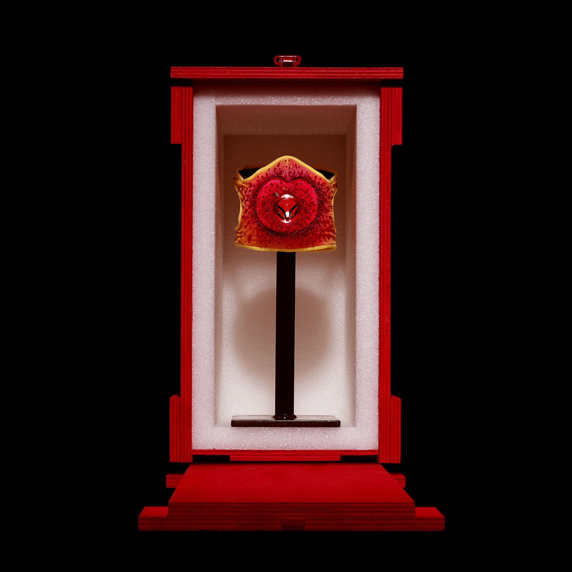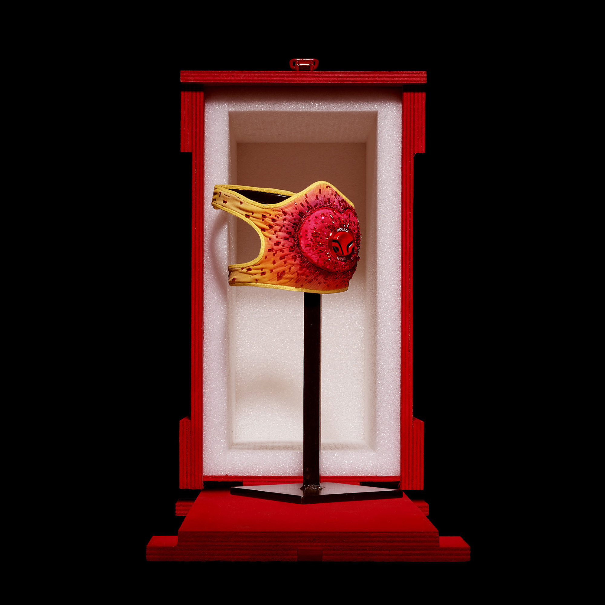 Présenté sur son socle et protégé dans sa caisse de transport sur-mesure réalisée par le layetier SEFEC, labellisé Entreprise du Patrimoine Vivant, ce masque à l’instar des deux autres, célèbre l’excellence made in France. Cette réalisation, fruit de l’alliance entre Haute Couture et haute technicité, incarné par la technologie de filtration brevetée R-PUR Nano®, offrant une filtration dix fois plus efficace que la plus haute norme européenne (FFP3), a valeur de témoignage contemporain de cette période historique.