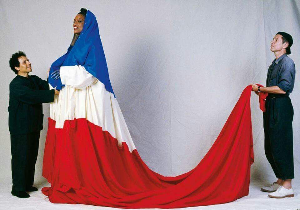 En parallèle à l’exposition au nom provocateur de French Correction, Jean Paul préparait la Marseillaise. En 1989 un grand défilé parade sur la plus belle avenue du monde, les Champs Elysées, célébrait le bi-centenaire de la Révolution Française : 12 tableaux vivants! 6000 artistes!. La rencontre pour un premier essayage entre Jessie Norman et Azzedine Alaïa, le Président de L’Institut Mode Méditerranée, se fit à Marseille. En clôture de ce défilé parade pour interpréter notre hymne patriotique, Azzedine enveloppa cette diva dans le drapeau Français.