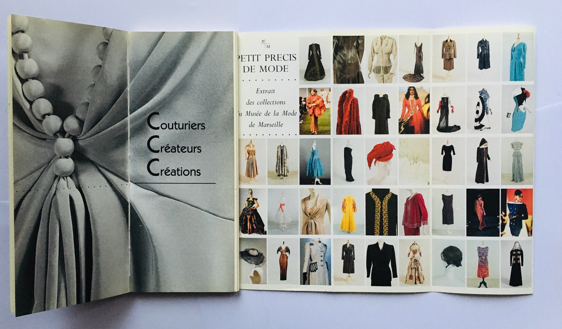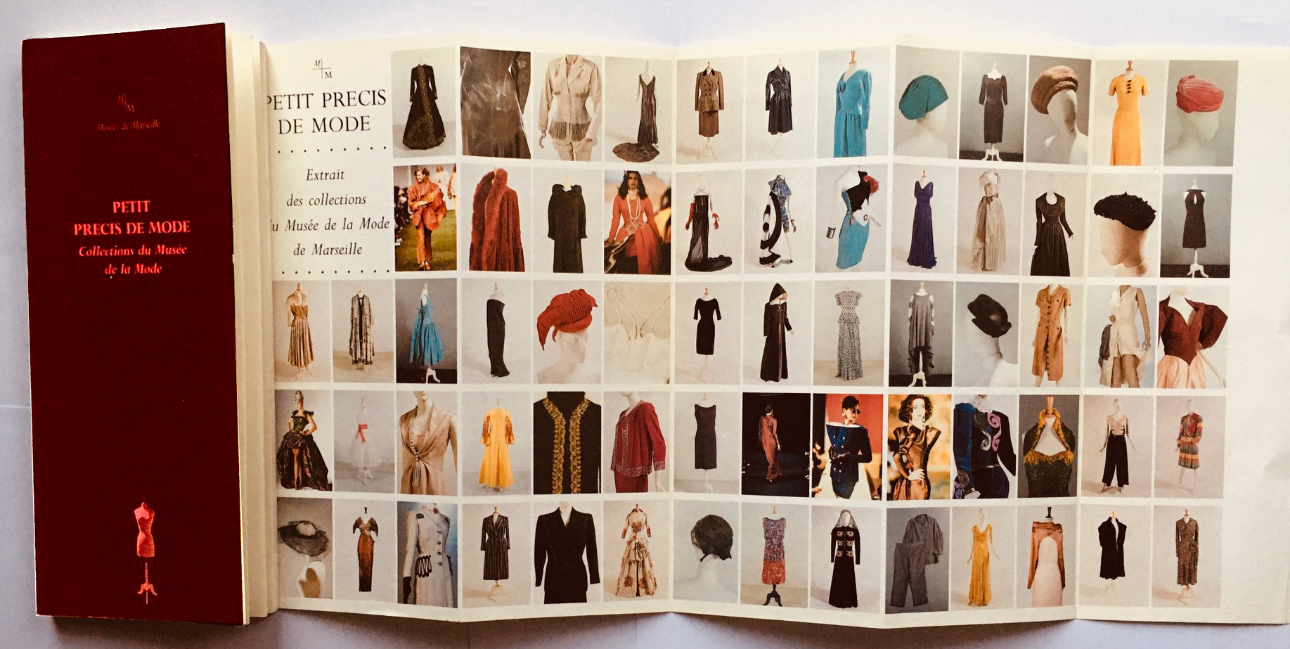 Ce Petit Précis de Mode fut rédigé sous la plume de Catherine Ormen, Conservatrice du Musée de la Mode. La première partie de ce trombinoscope présentait le patrimoine Mode du Musée depuis sa création en 1989. Une mosaïque de couturiers, d’histoires individuelles, de parcours originaux, d’expériences multiples qui toutes s’inscrivaient dans l’histoire de la Mode. L’occasion rêvée de souligner la générosité mais également l’intérêt des donateurs et mécènes, sollicités par l’Institut Mode Méditerranée (IMM) de participer  à la constitution  de ce patrimoine : « Six cents ensembles de Haute Couture et de Prêt-à- Porter, représentant un mécénat d’une valeur  de sept millions de francs, ont été rassemblés et offerts : Azzedine Alaïa, Balmain, Chanel, Jean Rémy Daumas, Jean Patou, Raphaël , Popy Moreni, Paco Rabanne , Hermès, Yves Saint Laurent ….. »