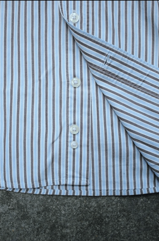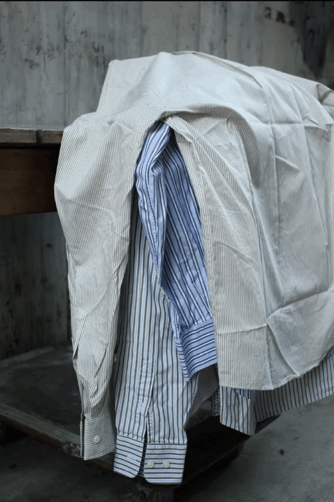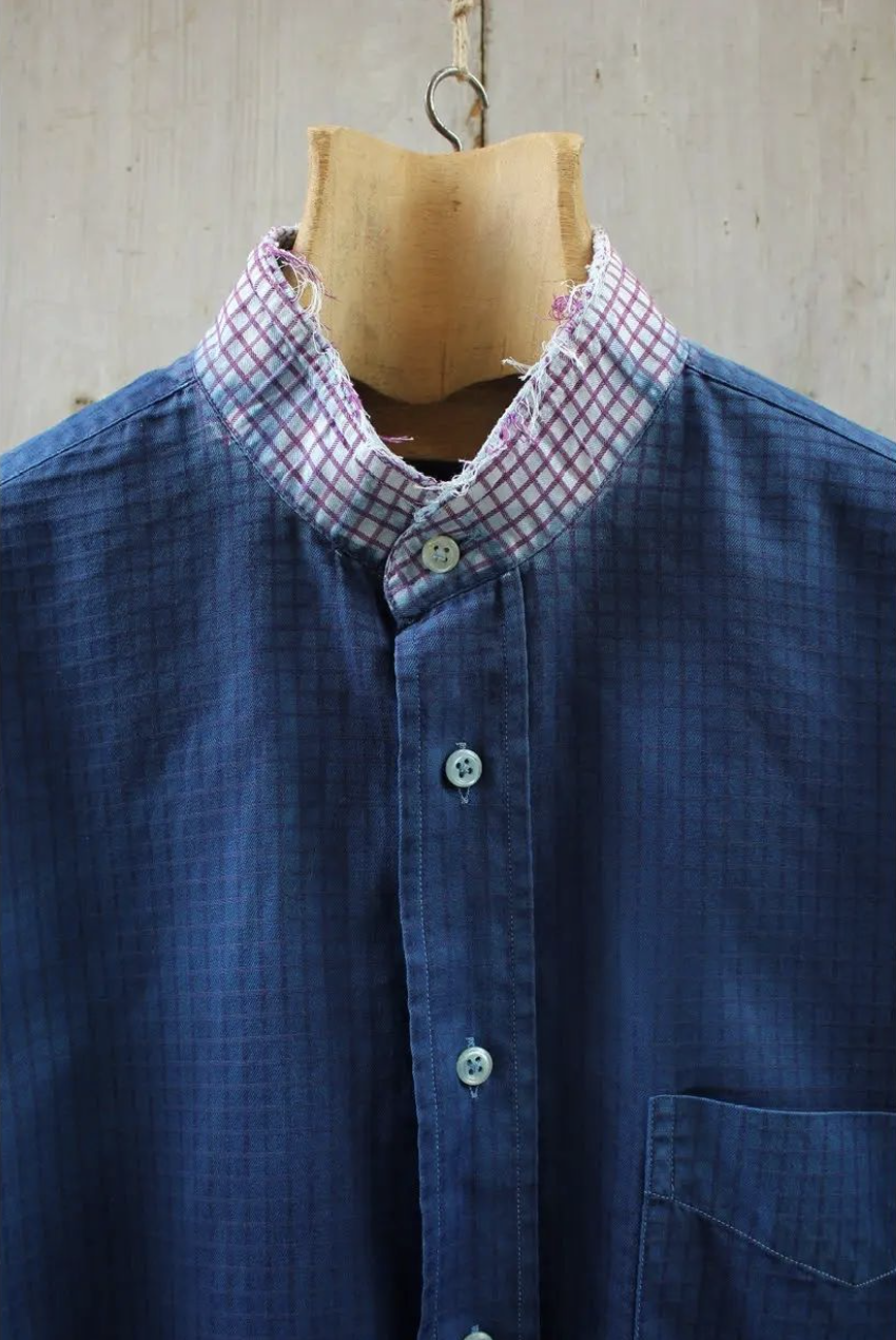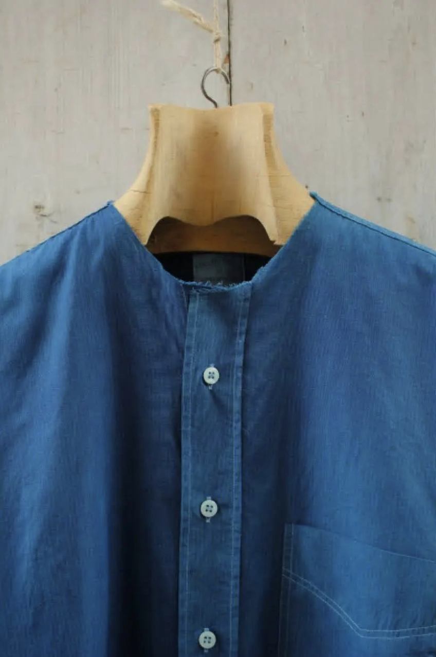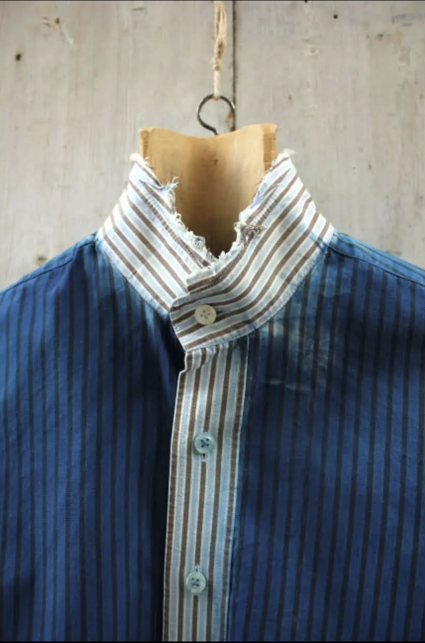 Pour son nouveau projet, baptisé RÉ.TABLI, la créatrice revient sur l’évolution de la chemise et ses détails de confection. Sa collection de chemises croise les diverses révolutions qu’à connu le vêtement. Tantôt masculin, tantôt féminin, parfois uniforme militaire et parfois sous- vêtement, la chemise condense les aspérités de la mode. Ainsi, les chemises RÉ.TABLI, évidemment de couleur bleu indigo, dévoilent des poches, des cols montants, des placements de boutons typiques des coupes masculines, des rayures qui évoquent la chemise de travail contemporaine,…. En une seule pièce, elles deviennent un élément de style renouvelable à l’infini et témoin d’une histoire de mode non linéaire. En effet, la chemise a connu des mutations multiples et doit l’une de ses nombreuses évolutions aux corps armés. Comme Anaïs Guéry le rappelle elle-même par la voix d’Yves Saint Laurent : « Les poches sur les chemises de sport sont bien pratiques, mais elles restent prohibées sur les chemises de ville qui ont à être élégantes et non fonctionnelles. Les cow-boys originels ne les connaissaient pas, même si leurs réincarnations de l’écran y cachent leur dernière cartouche. C’est un héritage des tenues de brousse, bush-jackets des troupes coloniales britanniques, repris par l’armée américaine du Pacifique pendant la Seconde Guerre mondiale. Il y a, comme cela, beaucoup de détails vestimentaires masculins dont l’origine est militaire. » Ce récit par l’un des plus grands créateurs, paru en 1990 dans la préface du livre de Maguelonne Toussaint-Samat, Histoire technique et morale du vêtement (éd.Bordas), n’est pas sans rappeler l’exposition « Mission Mode » initiée par la Maison Mode Méditerranée en 2016.