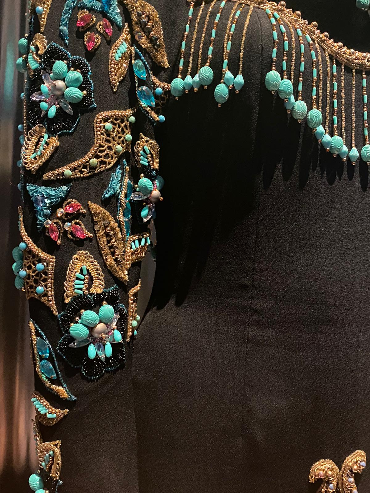 Des années 1930 aux années 1970, les Divas Arabes ont placé la langue arabe et leurs cultures musicales sur la scène internationale, permettant même aux pays du Maghreb de créer leurs premiers labels de musique indépendants. L’exposition rappelle qu’aujourd’hui encore, de Casablanca à Marrakech en passant par l’Egypte, leurs mélodies sont écoutées jusque dans les boites de nuit. Ayant contribué au développement culturel de tout le monde arabe, ces avant-gardistes de la scène musicale ont également mis en scène leurs corps et parures en développant des styles riches et des silhouettes ultra-travaillées, composées de broderies de perles, de robes plastrons, et de larges bijoux, qui sont autant d’héritages culturels que la jeune création ne se lasse pas de réinterpréter.